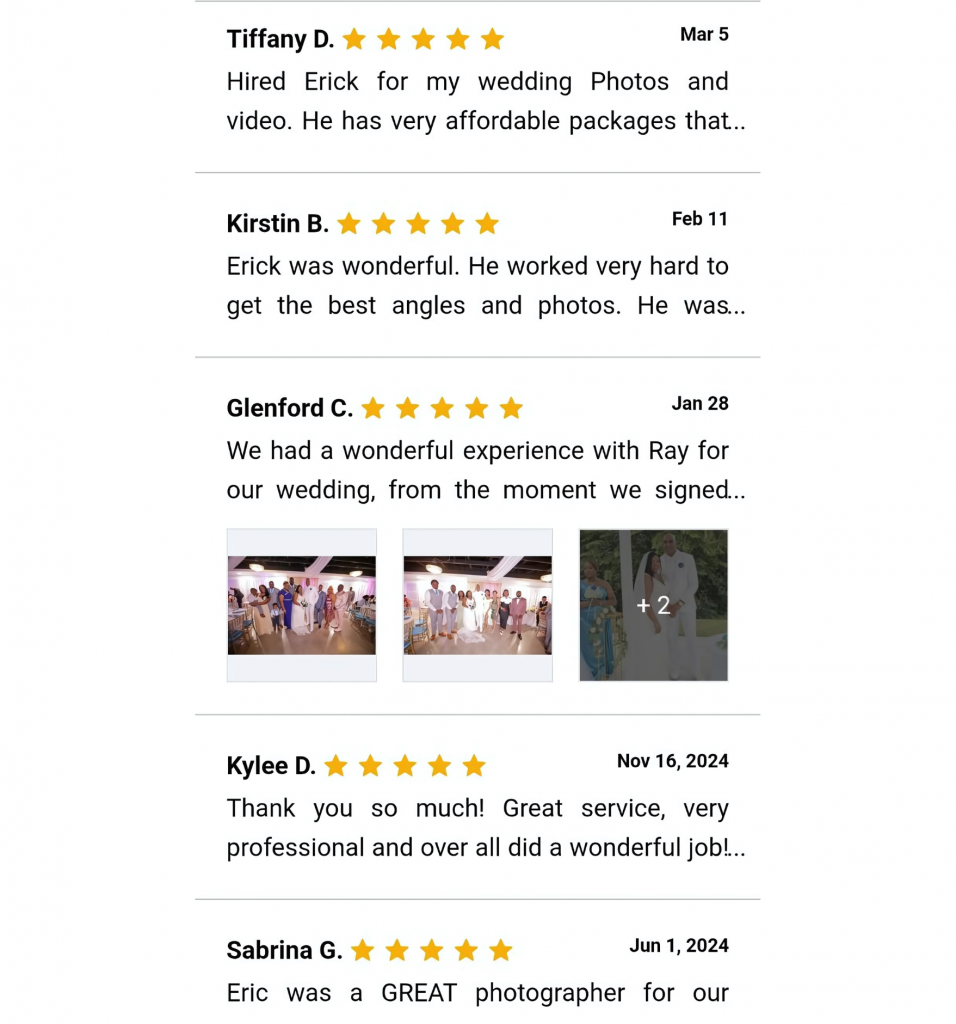 Ray Photography and Video provided exceptional service for our wedding. The team was patient with customizing a package that not only… read full review5.0/5.0